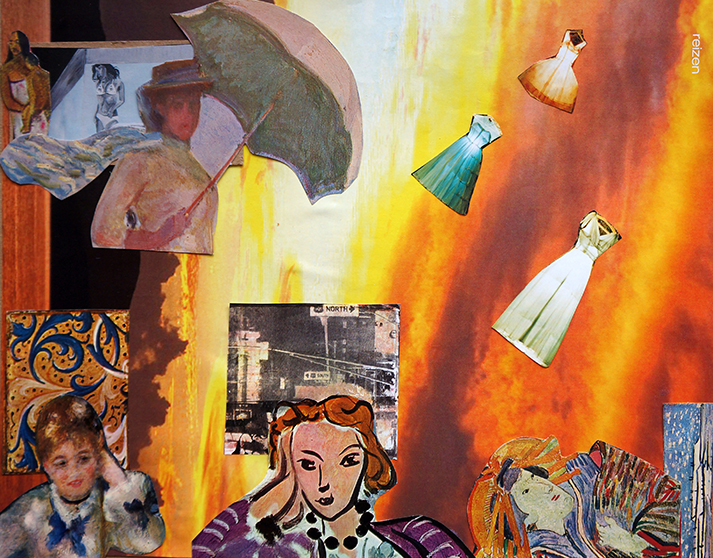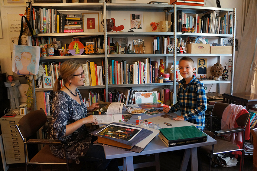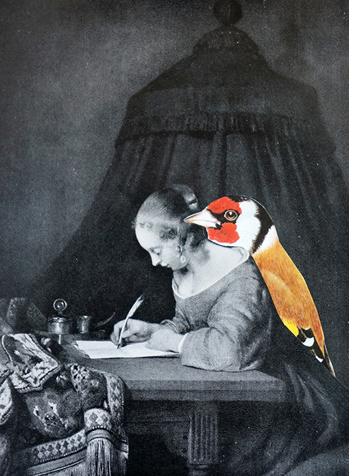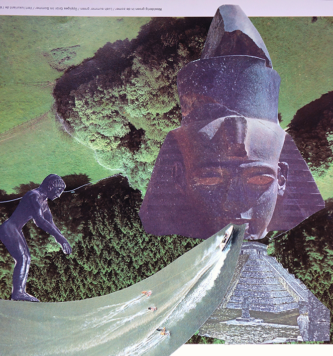 And I loved it. First of all because I could refer to the collage works made by fellow artists around me. And secondly because we had access to my entire collection of vintage books and magazines to help people look for images according to their needs.