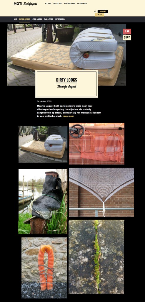 October 16, 2015October 16, 2020 mjaquet Dirty Looks on MOTI My Dirty Looks photo series is now featured on ‘Beeldjagers’, a new Online Museum, instigated by MOTI, Museum Of The Image. Share this: Click to share on X (Opens in new window) X Click to share on Facebook (Opens in new window) Facebook More Click to share on LinkedIn (Opens in new window) LinkedIn
