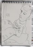 ARGUS – exhibition ‘the reader of the newspaper’, Wassenaar public library, March 18 – April 15. With photos, cartoons and drawings by: Eddy Posthuma de Boer, Bert Nienhuis, Daniel Koning, Michiel Wijdeveld, Maartje Jaquet en Bert Verhoeff (who all work for ARGUS). My contribution is a triptych of drawings of my husband Rogier van der Ploeg.