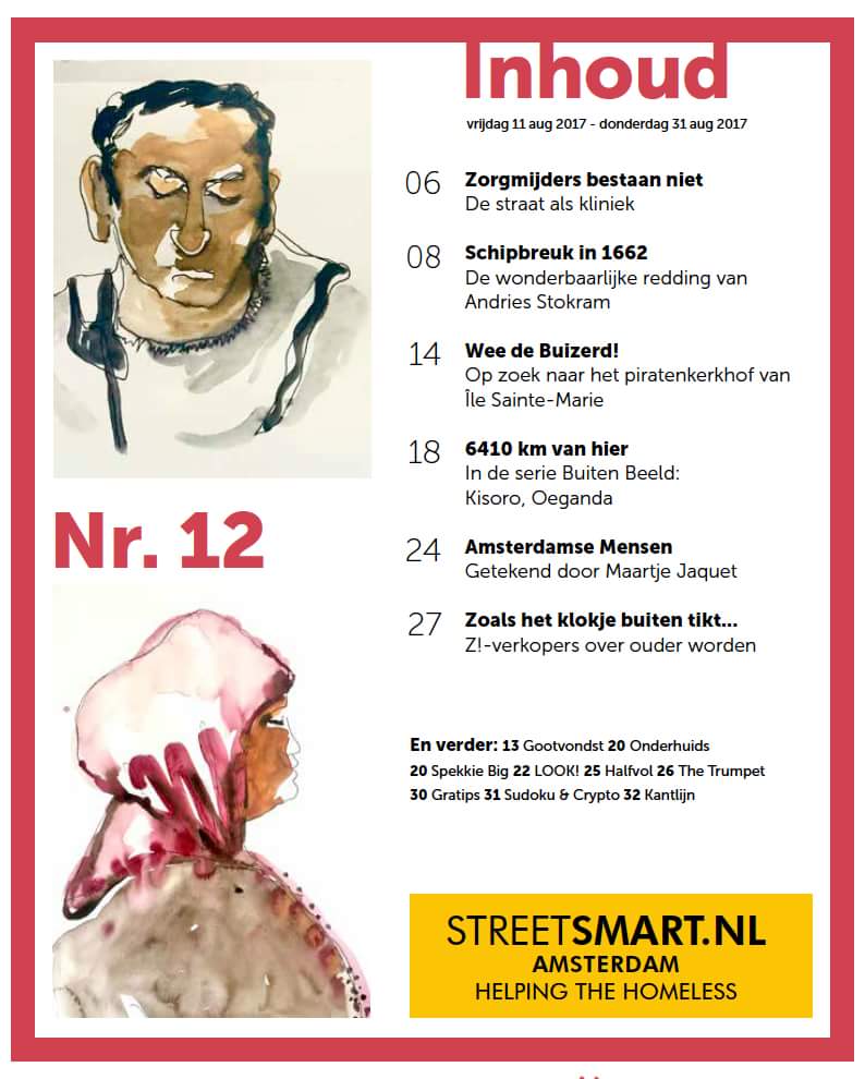 My drawing / painting project ‘Amsterdamse Mensen’ is featured in the new issue of Z!, Amsterdam Magazine for the Homeless. Some of them were made during my residency at BijlmAIR (CBK Zuidoost), others on different locations throughout the city.