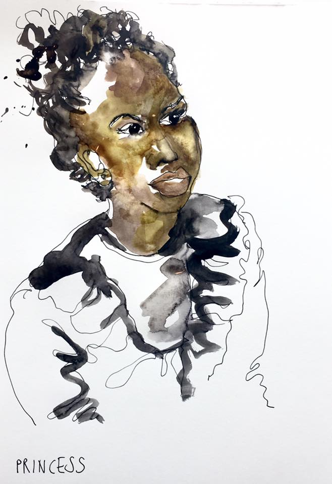 I will be back here again on Saturday the 4th of November, during Museumnacht Amsterdam, to make more live portraits. On the same day AIR, a group exhibition of all the artists in residence who have been working at BijlmAIR for the last 12 months, will be opened, among the artists: Brian Elstak, Esther Meijer (Nieuw Jurk), Evy Jokhova, Esther Polak & Ivar van Bekkum and me, showing what I have been working on during my residency at BijlmAIR: in May / June I have been drawing and painting people in the streets of Amsterdam Zuidoost, on many different sizes of paper, from small scribbles (5x10cm) to large water colors (100x150cm). More details about this event will follow soon in the News section of this website.