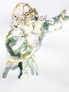 Bades Foundation Rotterdam invited me to attend the festival to make drawings and water color paintings of the performing artists. (click on any image to view a large version)