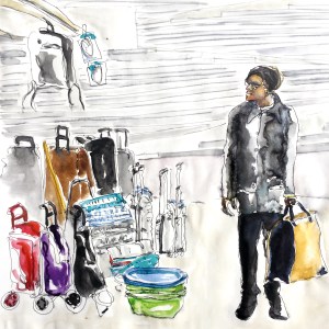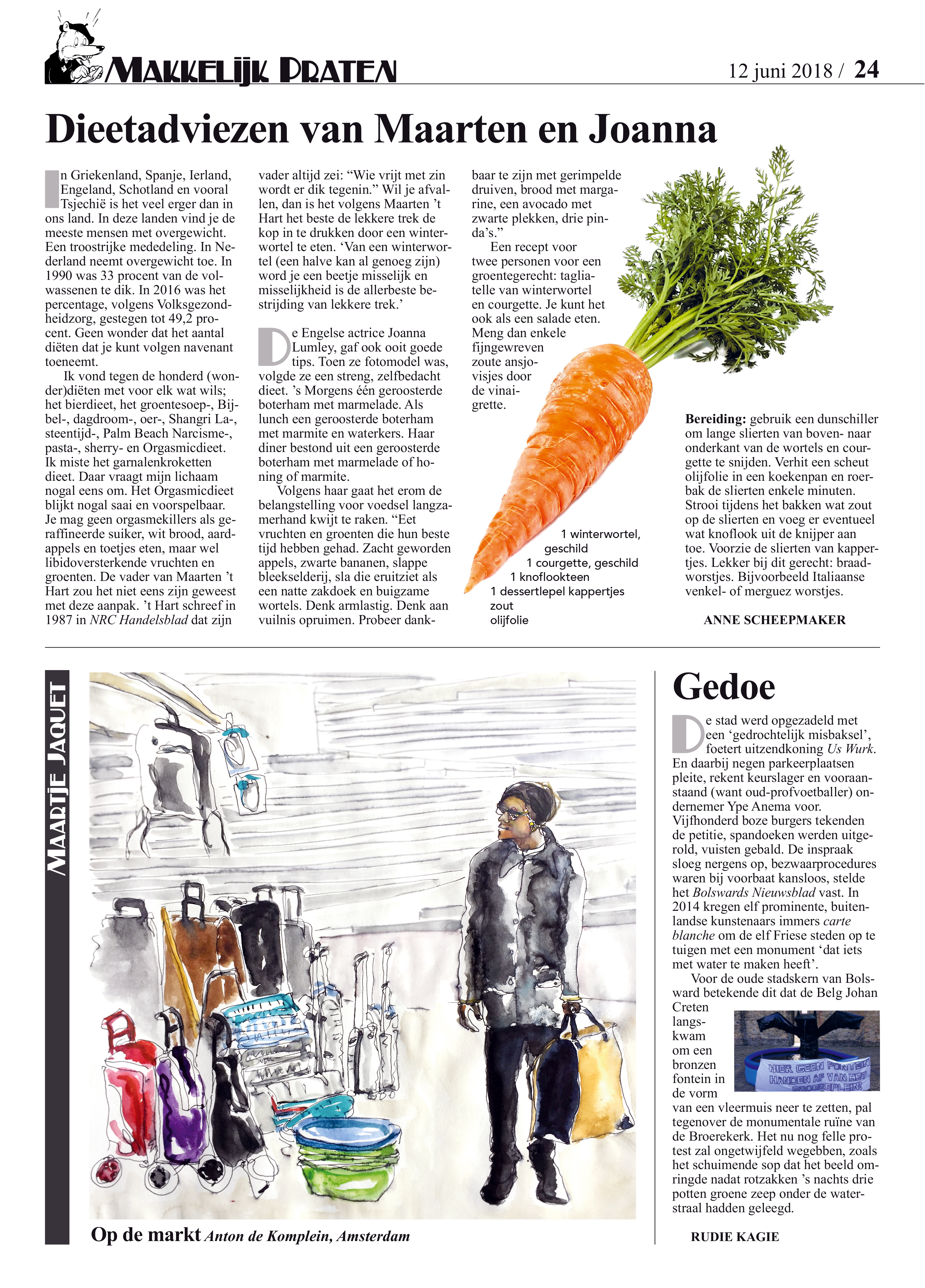 This is the first drawing of the new back page of Argus. Small series of four, each time from a different location. The first series: On the market. Today: Anton de Komplein, Amsterdam.