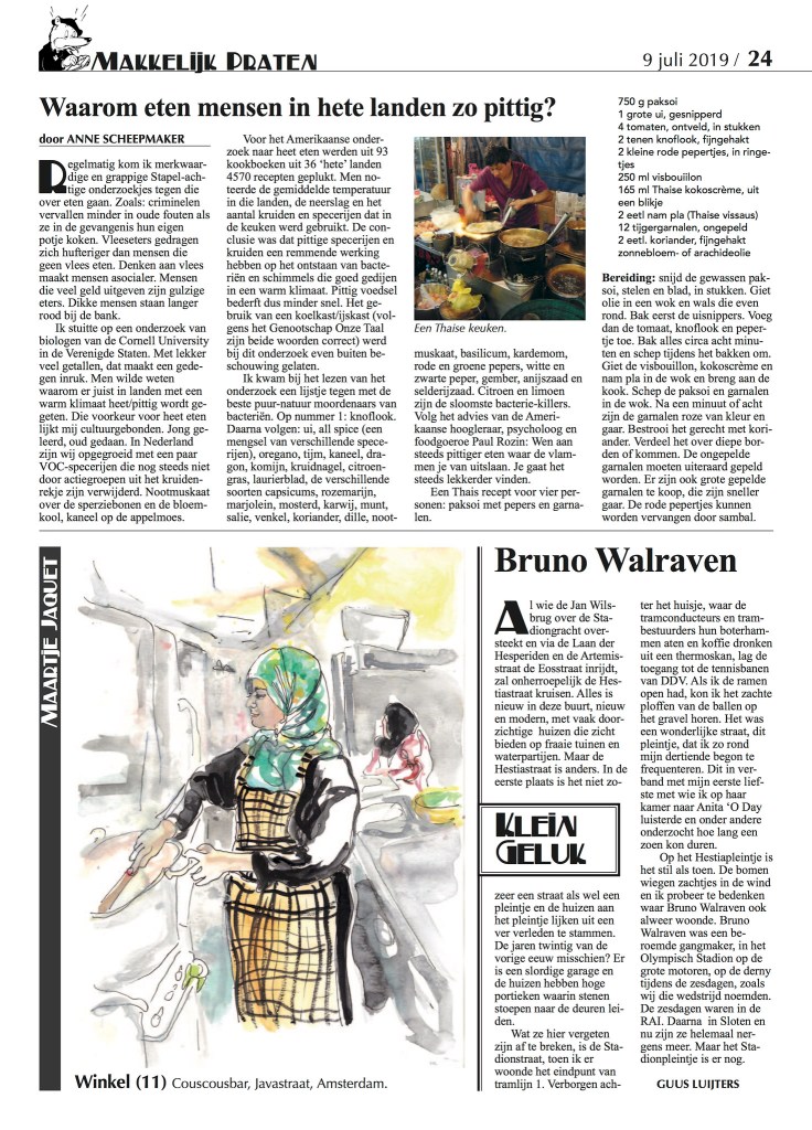 Above is a drawing of yemma Rabia, mother of owner Samira Dahmani, owner of Couscousbar. Rabia was busy cooking a large pan of Harira, a soup that is indispensable during Ramadan! The drawing featured in my series on the back page of Argus magazine.