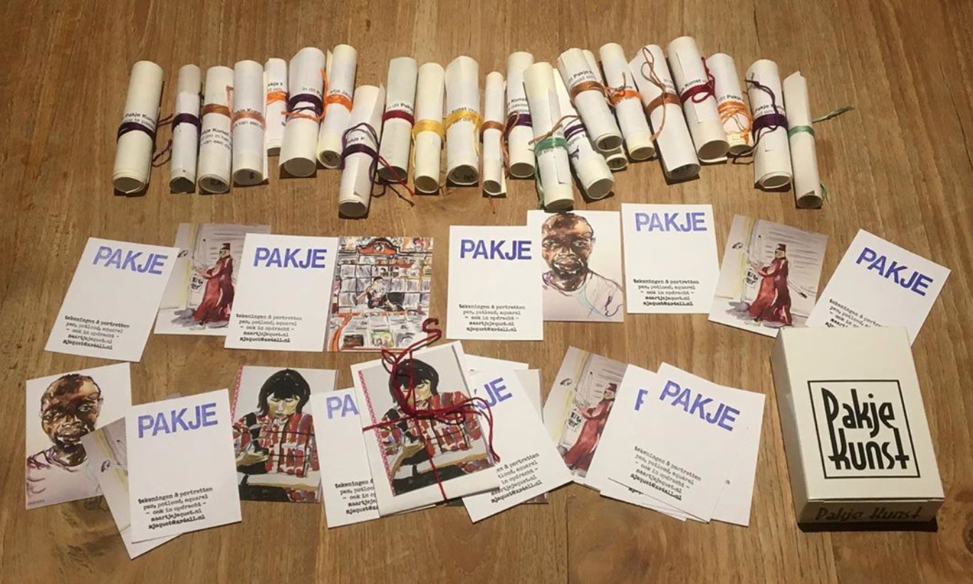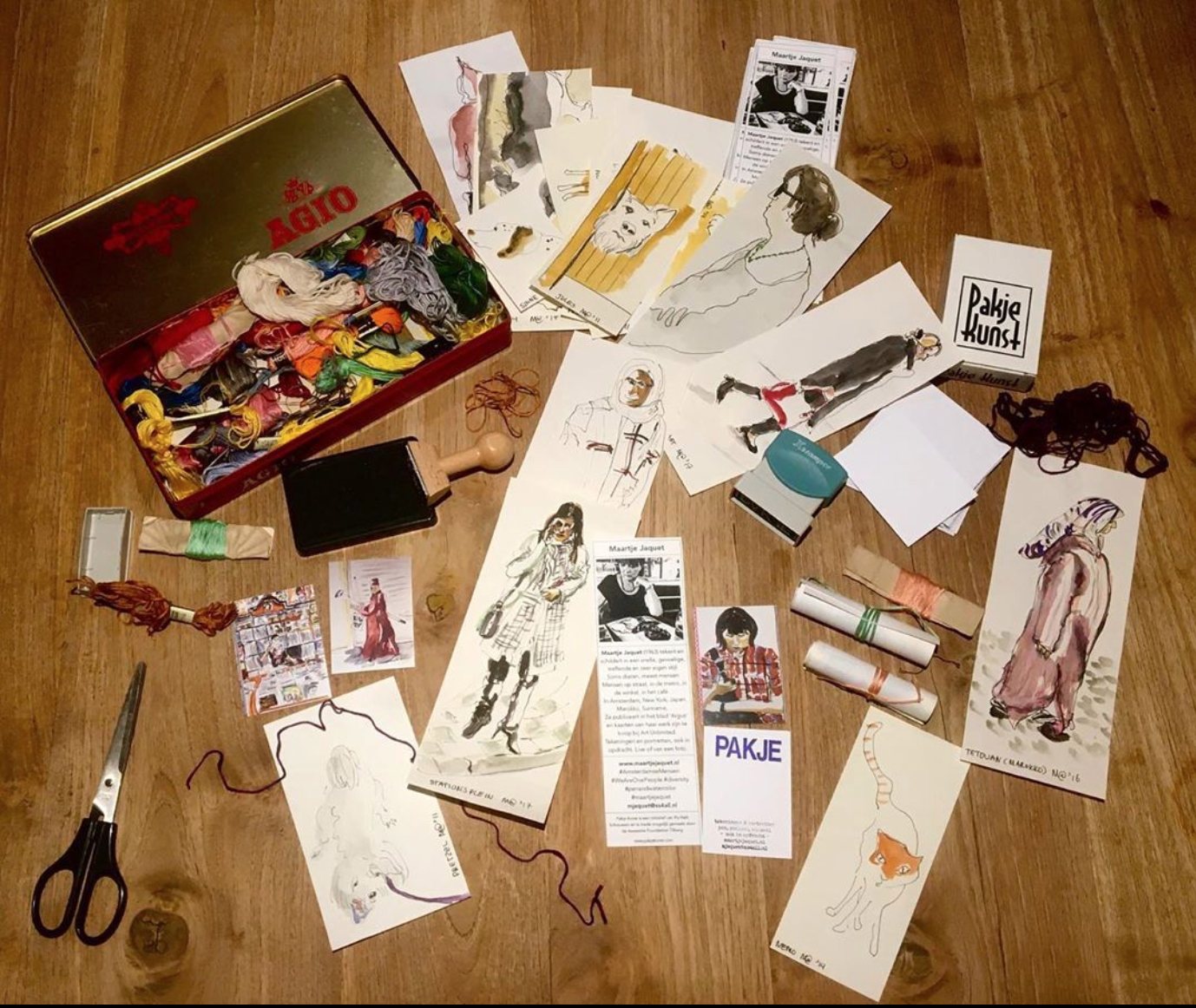 As of today the Pakje Kunst *) repurposed cigarette vending machine with original art pieces made by Amsterdam artists has found its place in the Amsterdam Museum. With art by Edith Brouwer, Greet Weitenberg, Diana Ozon, and more. And … with original pen and watercolor drawings made by me! So, if you happen to be in Amsterdam, for only €4 you can buy original art presents for you family, friends or yourself!