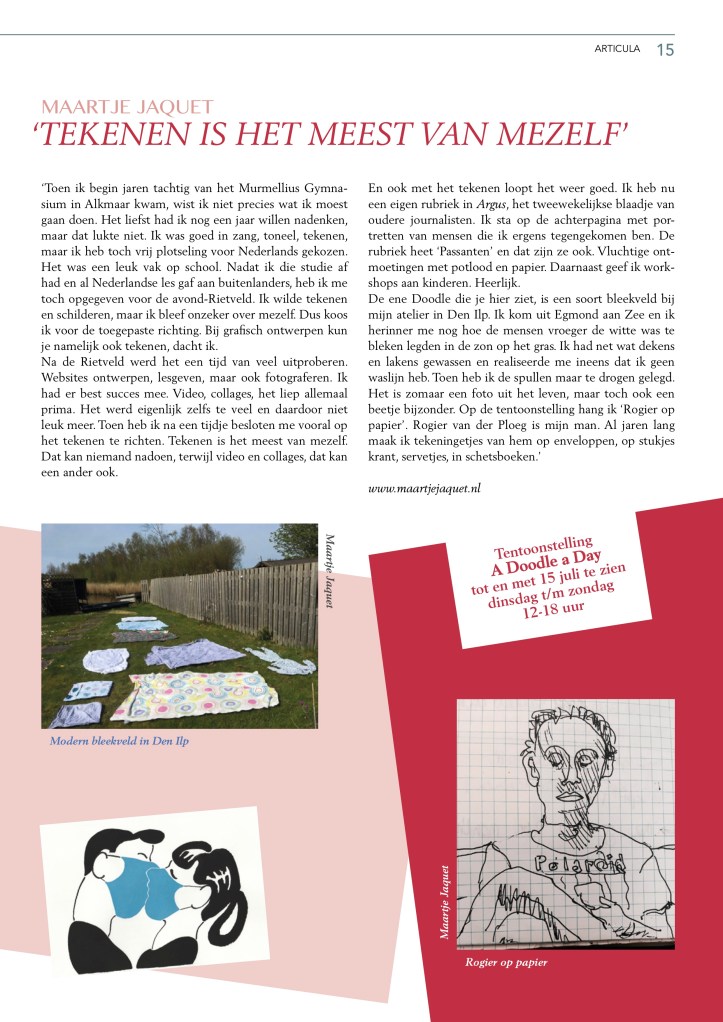 ART = LIFE = ART is featured in the latest issue of digital ARTI magazine ARTICULA, July 2020. Also, there’s an interview with me, about my work and my contribution to the project and exhibition A DOODLE A DAY. “To me, the art of drawing is the most personal of all.”