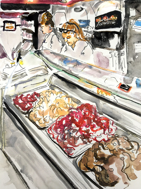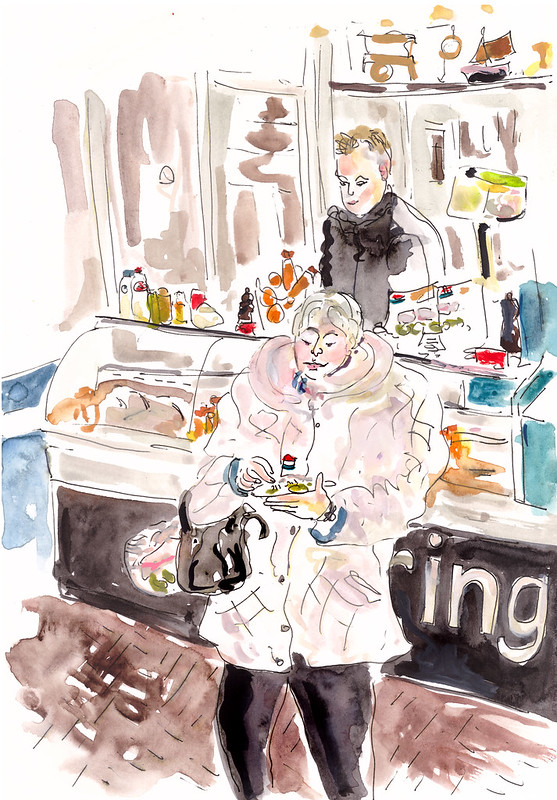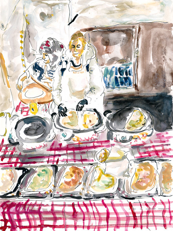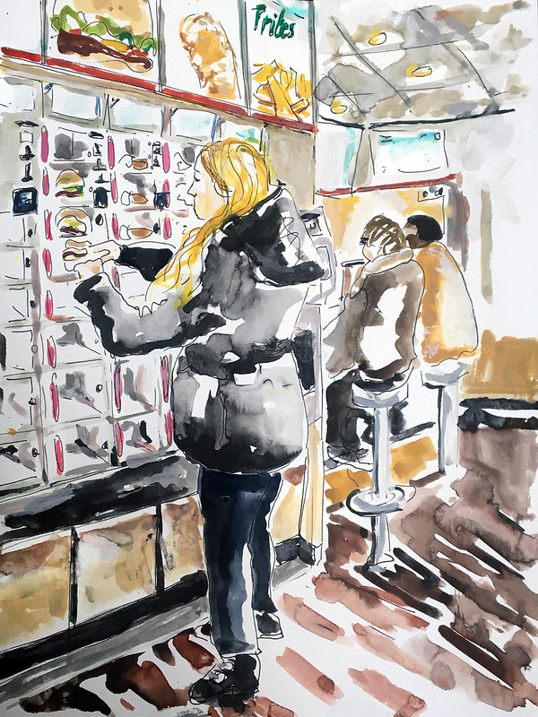 Next week my drawing series for Argus magazine, of places in Amsterdam where you can go for a snack, will be finished with ‘Eetsalon Van Dobben’. The series had been interrupted because all bars and restaurants were closed due to COVID- 19 safety regulations. During that time, i.e. more than three months, I worked on a series of drawings about that.