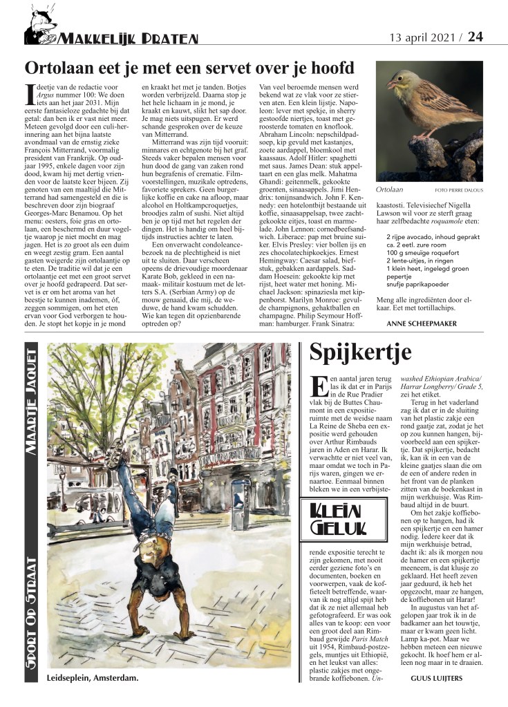 The hundredth issue of Argus magazine has been published and the portraits I made for the festive extra issue, “2031”, accompanying Rudie Kagie’s article, have been purchased by the KOG (Koninklijk Oudheidkundig Genootschap = (Royal Antiquarian Society) in the Rijksmuseum! *)