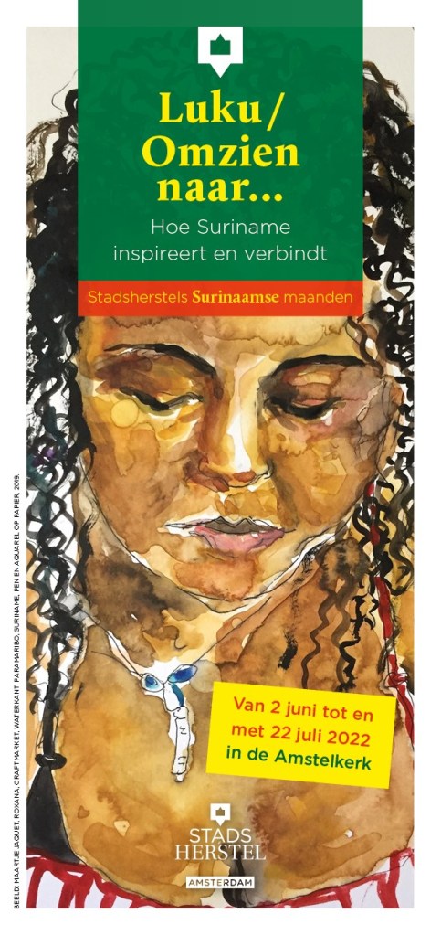 At the evening of the first lecture, on Monday June 13th, I will talk about the portraits that can be seen in the exhibition in the Amstelkerk, previously made for the duo exhibition ‘Bezielde Lijnen’ in Readytex Art Gallery, Paramaribo (2019), about my friendship and collaboration with RInaldo Klas, visual artist and former director of the Nola Hatterman Institute in Paramaribo and about the project I have been working on since: Keti Koti Project – Ala Sma Tori.