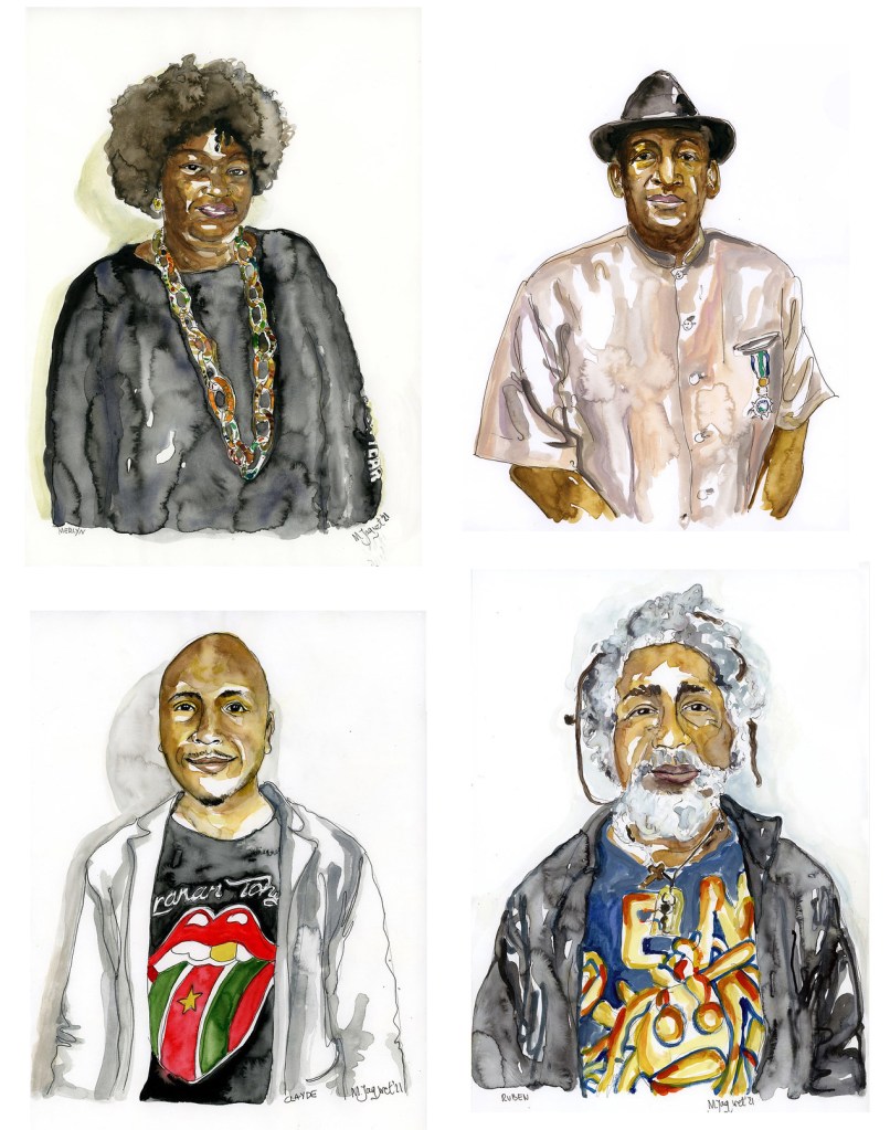 ‘Merlyn’, ‘Ricardo’, ”Clayde’, ‘Ruben’ – pen and watercolor on 29,7 x 42 cm paper