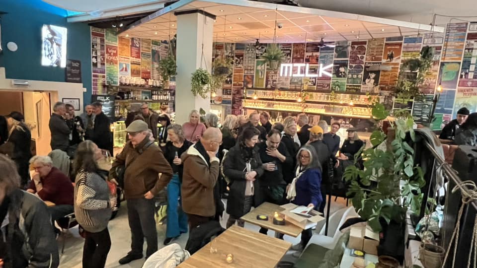 I played bass guitar and sang background vocals in his band Astral Bodies. Last Sunday, April 17th was the official opening. Tthe exhibition is free to visit, until April 30th 2023. Together with this exhibition we launched a CD, Astral Bodies Live At The Milky Way, from recordings we made during our live shows back then, we still have the poster of these gigs, see below. Both our CD’s, Astral Beat and the new album, can be bought online or streamed through Spotify.