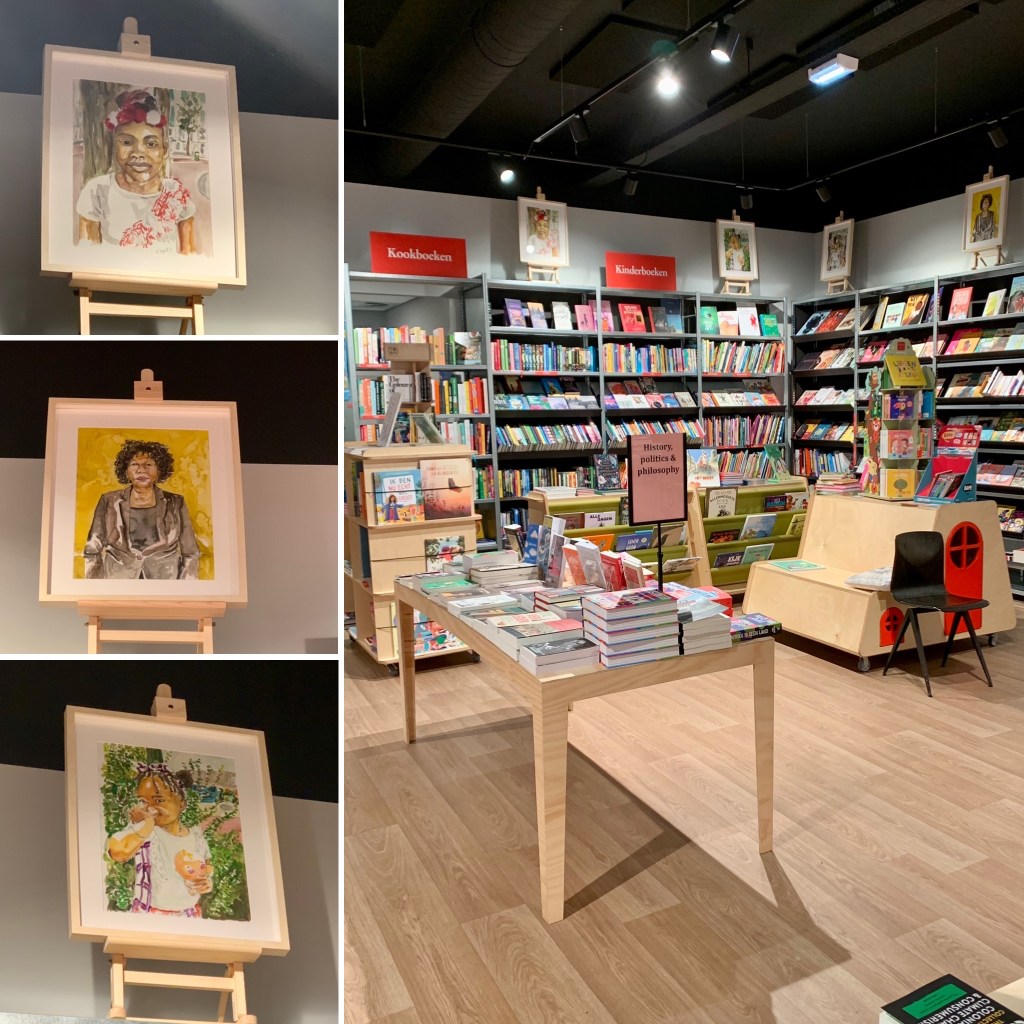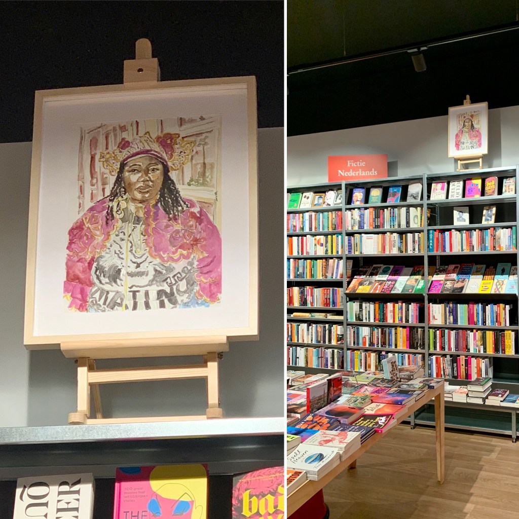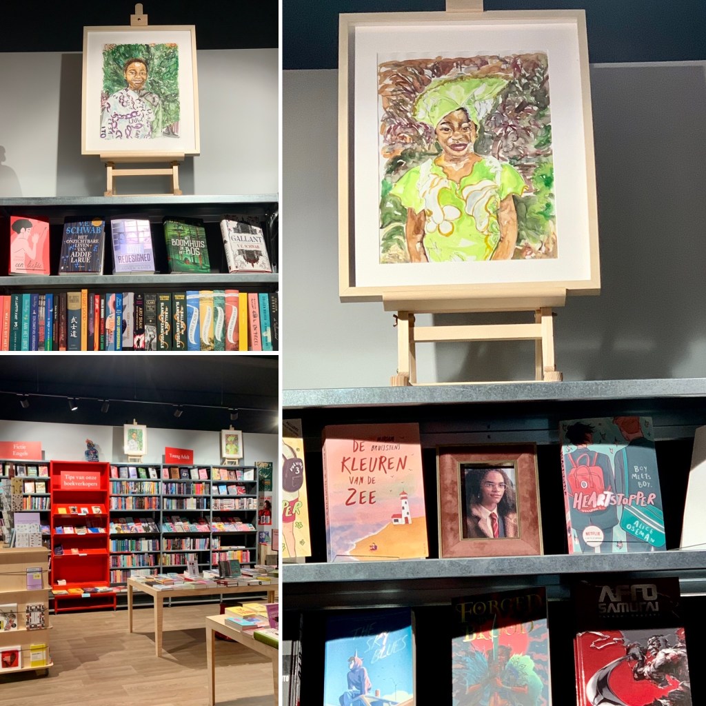 When in Amsterdam, do visit Athenaeum Boekhandel Zuidoost! In this – very nice – bookstore I have set up an exhibition with original portraits from my book ALA SMA TORI Keti Koti Verbeeld. The exhibition is there until January 9th, 2024. The address is Bijlmerplein 1009, close to metro stop Amsterdam Bijlmer Arena (if you walk towards the ‘Amsterdamse Poort’, it is on your left at the first underpass.