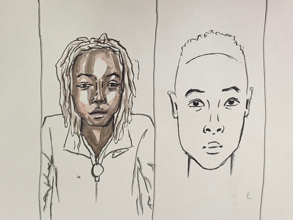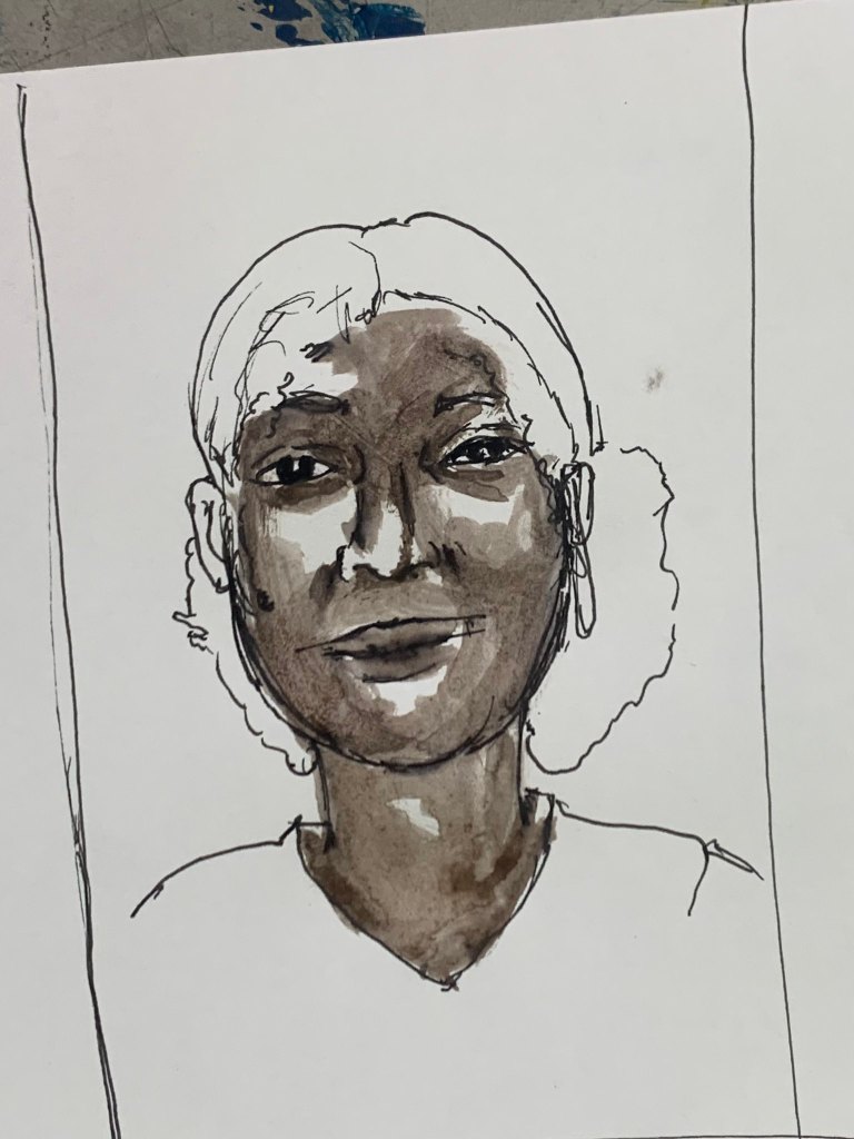 - make small portraits of each other, first pen then watercolor. again with the same two shades of brown
