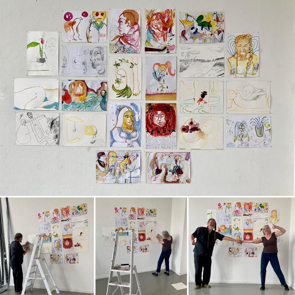 On Sunday June 2nd, from 14:00 – 16:00, Jonas Ohlsson and I will give a performance PING PONG DRAWING. “MAARTJE JAQUET AND JONAS OHLSSON show in a live performance how they work together for the 1en1is1 project. With varying music for the atmosphere, they draw and paint on each other’s work. One makes a start, the other continues to work on it and then gives it back. The work of art keeps changing makers until the artists decide together that it is finished. Right next to them, an extra workplace has been created for two people who feel like joining in. This way you can, besides seeing what it is like to work this way, also experience it.”