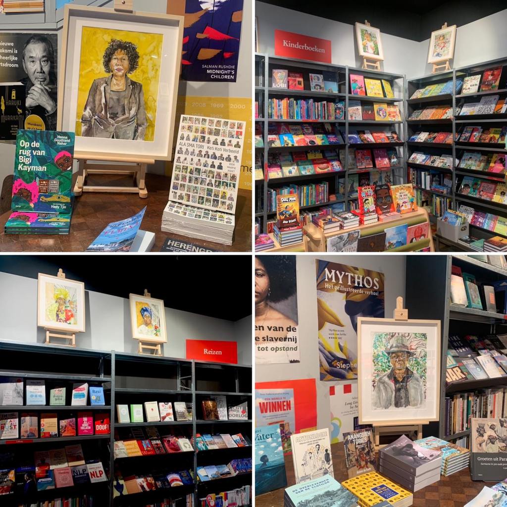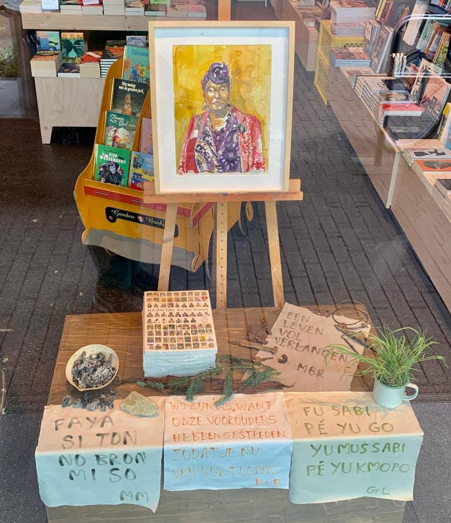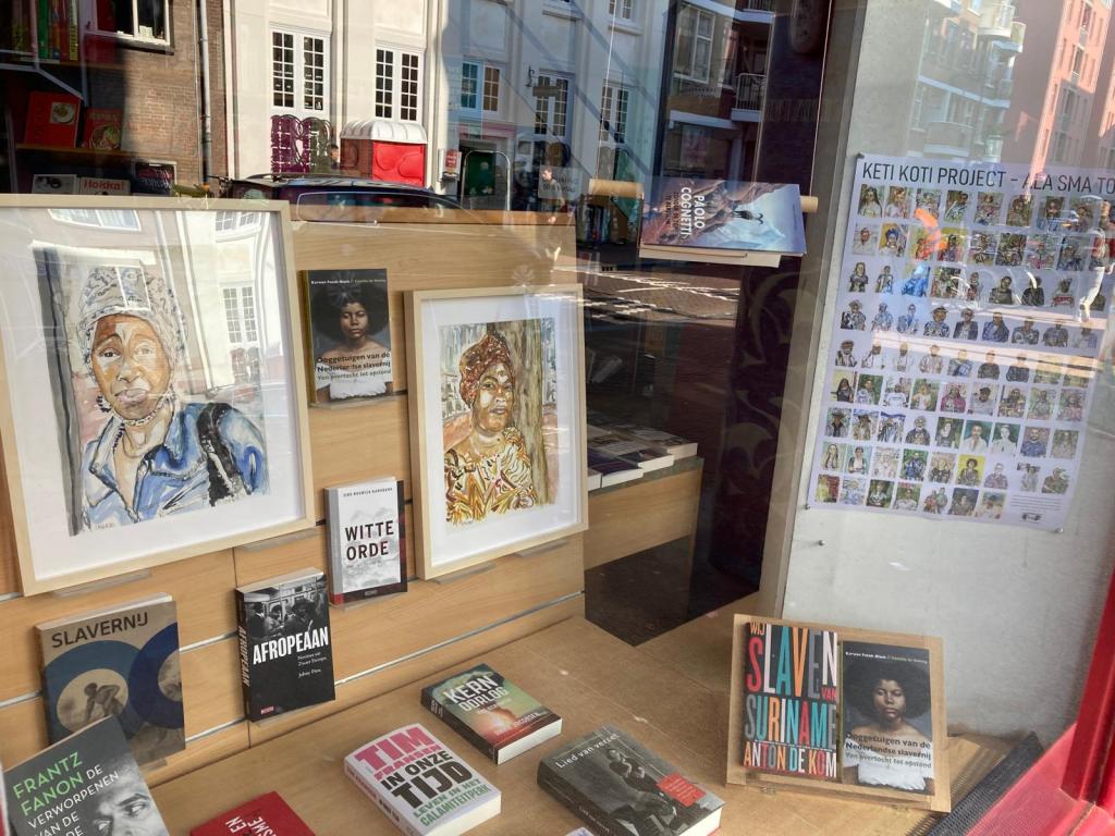During the ‘Keti Koti remembrance Month’ of June, the month preceding Keti Koti (the first of July) and after, I am organizing exhibitions, together with book stores in Amsterdam, inside their shop and/or in their shop windows.