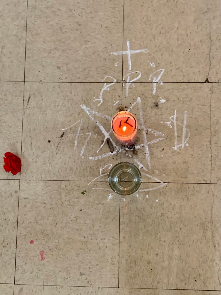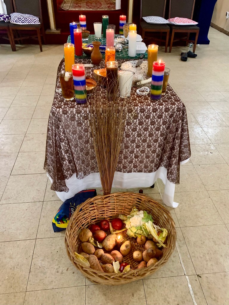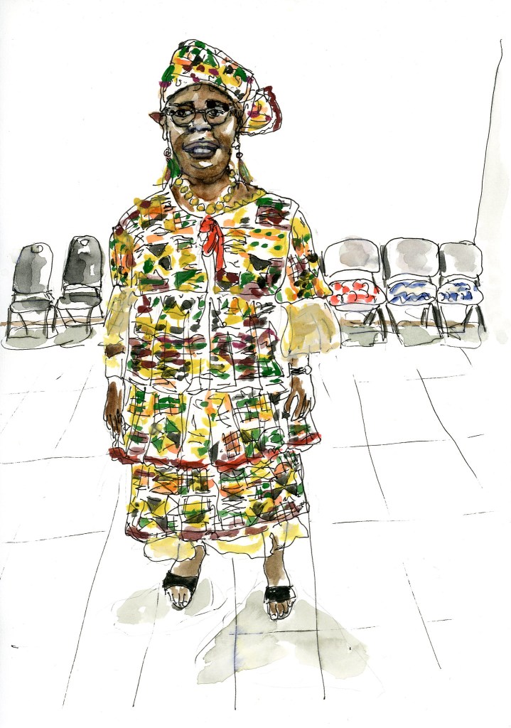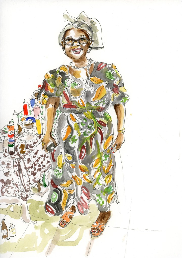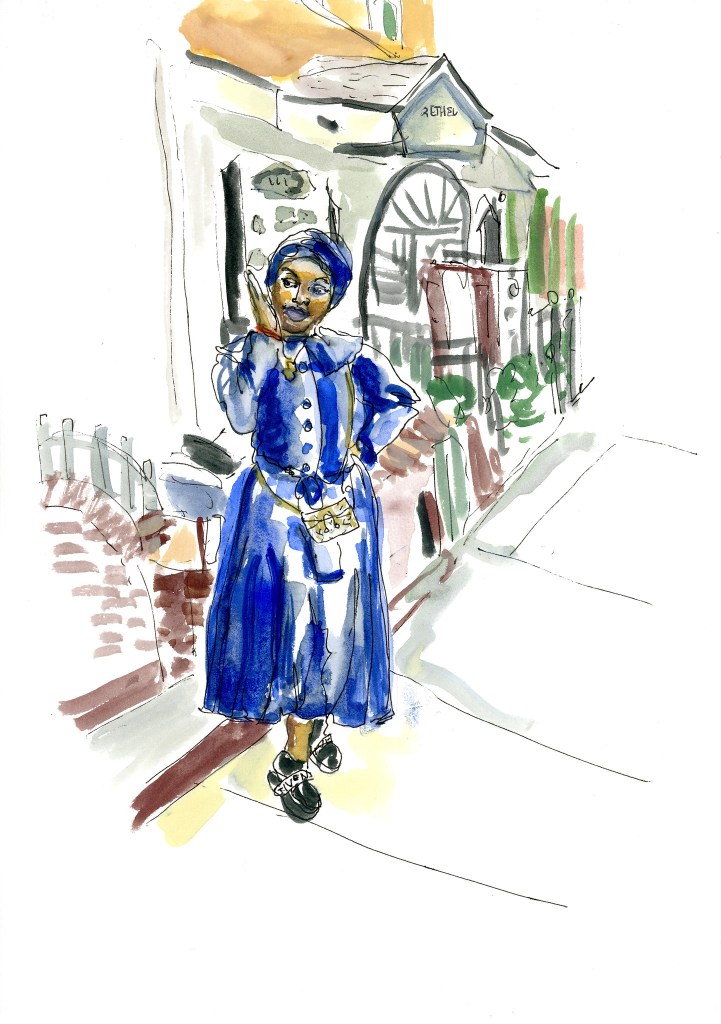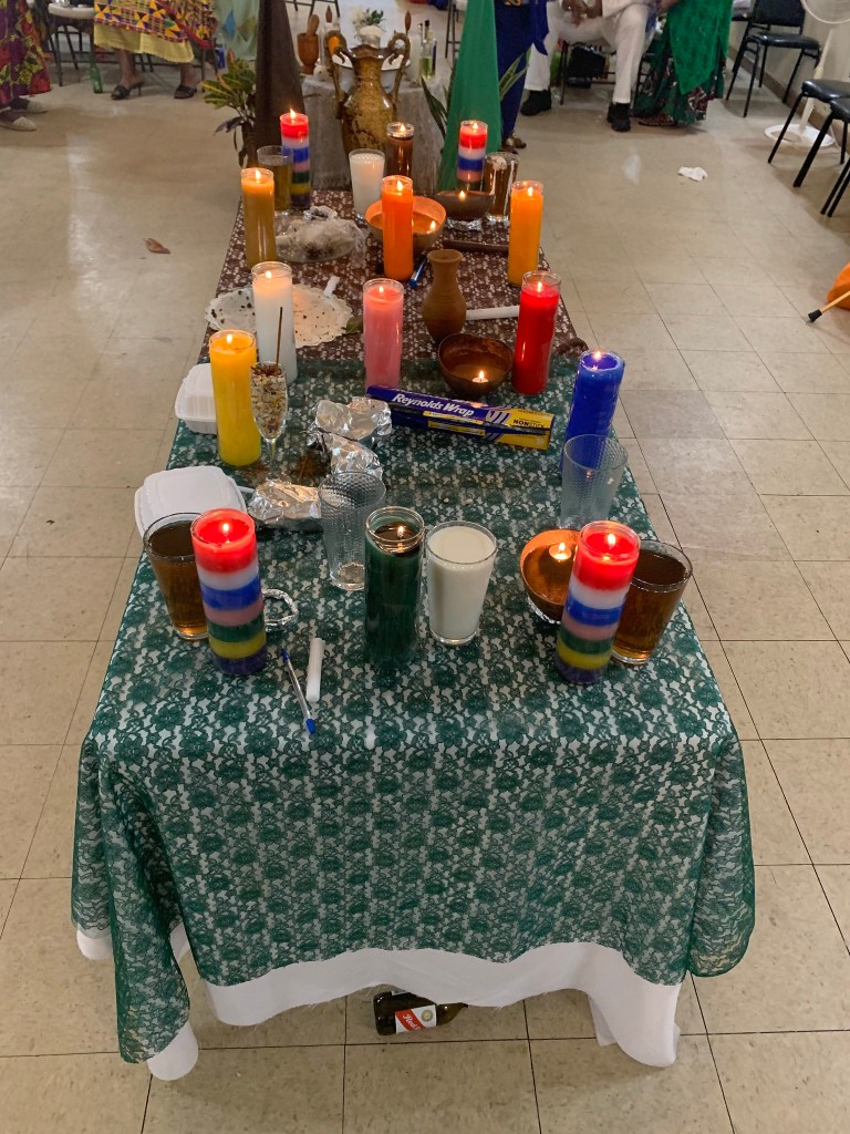 These are the eight portraits of the people I met in Dean Street Brooklyn (NY), in front of and inside Bethel Spiritual Baptist Church. These most friendly people invited me in after I made some comments about their beautiful outfits, their beauty in general. Inside the church I noticed similarities with what I had seen before at WInti (an Afro Surinamese religion) gatherings and Vodou rituals from Haiti. Below I will add some photos I made inside the church. When I asked about this I was told that in this church a combination of Baptist and indeed African spiritual faith, with ancestor worship, was practised.