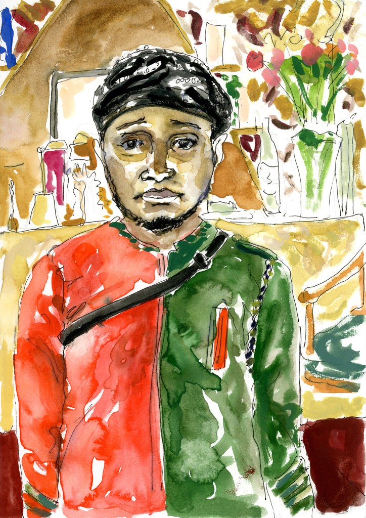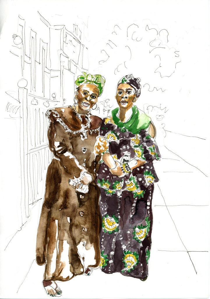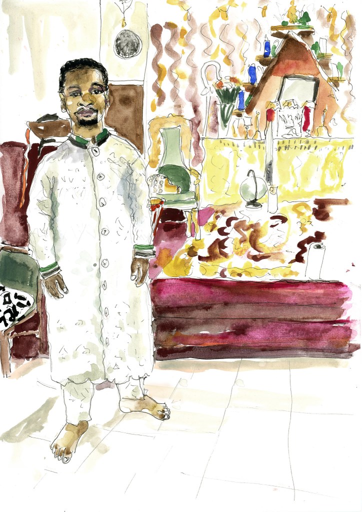 It was an unforgettable meeting, and now I have these portraits as a beautiful memory. Back in my studio in Den Ilp, I scanned the drawings / watercolors to A3 size (the originals are A4) and emailed them to the priest (first drawing) so that people can have them printed for themselves.