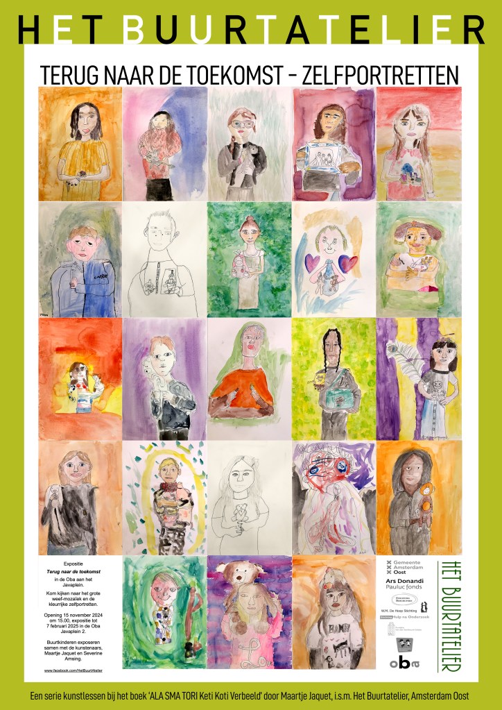 During the last weeks I was a guest teacher at Het BuurtAtelier in Amsterdam, where artists Mette Steincke and Ursula Woerner teach art to children on a weekly basis. I had been invited because of my portrait art, especially the portraits I made for my book ALA SMA TORI – Keti Koti Verbeeld.