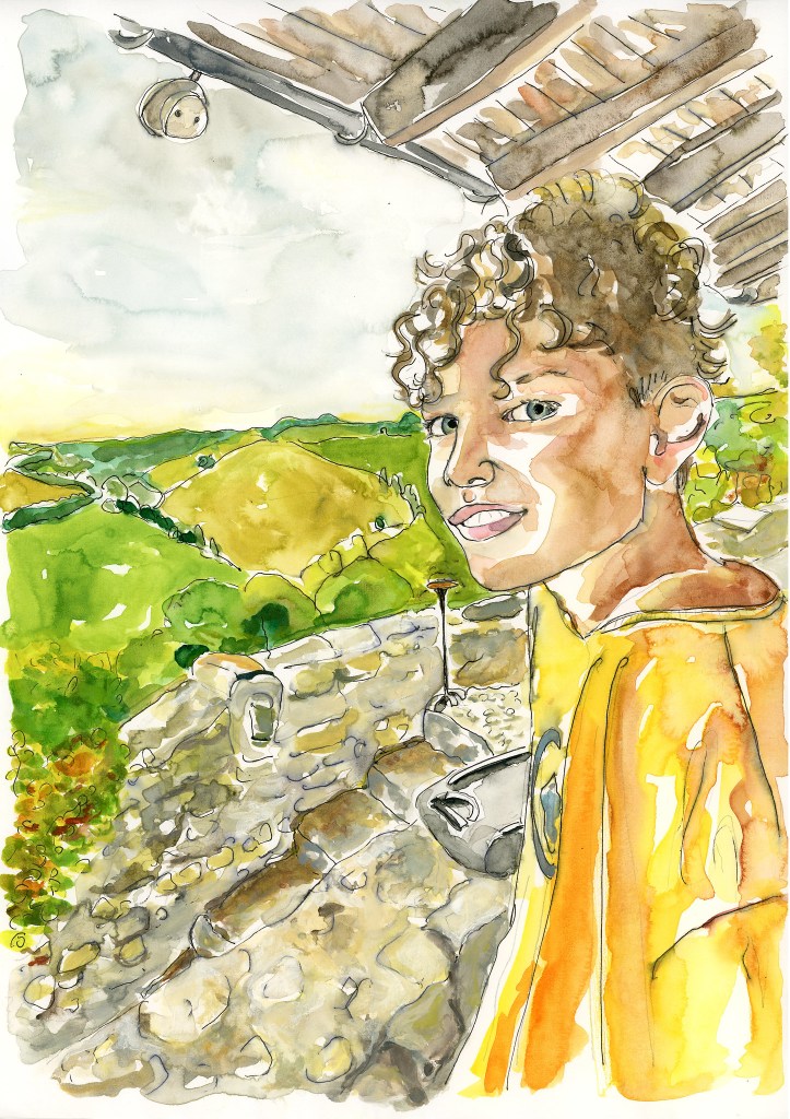 Don & Björn, in the South of France, pen and watercolor on A3-size paper.