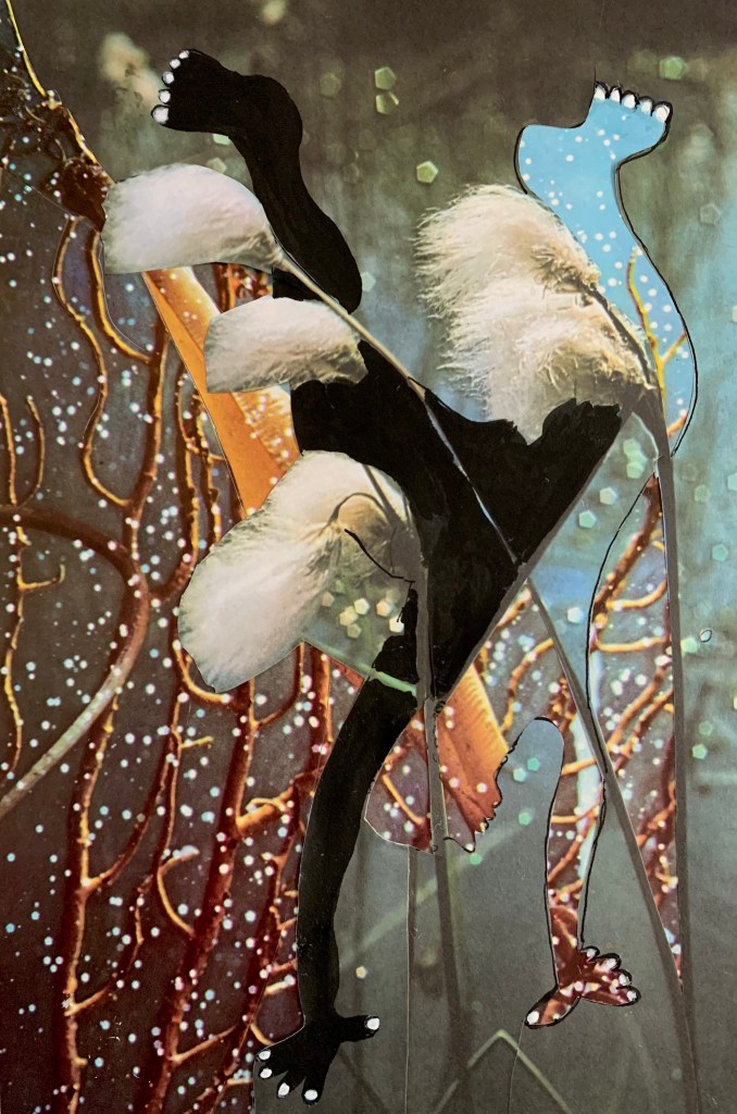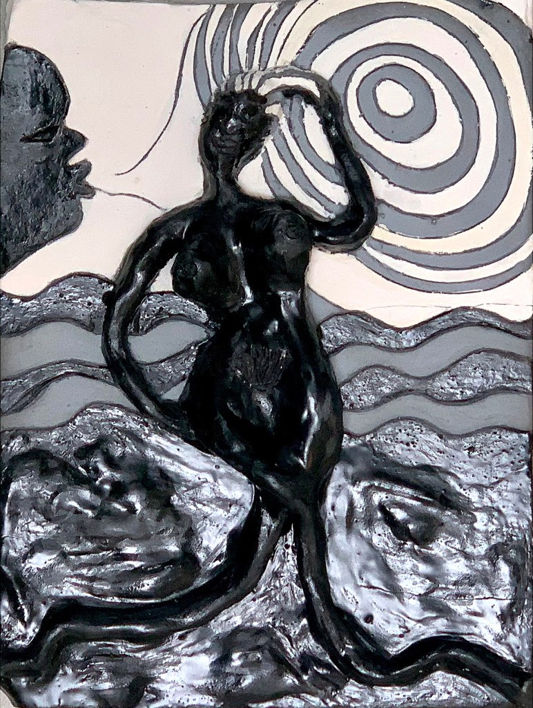 My works on view and for sale in the Amstel Church, all inspired by Mama Aisa / Mother Earth: five collage drawings and a work in ceramics. The acrylic painting is by Rinaldo Klas and me.