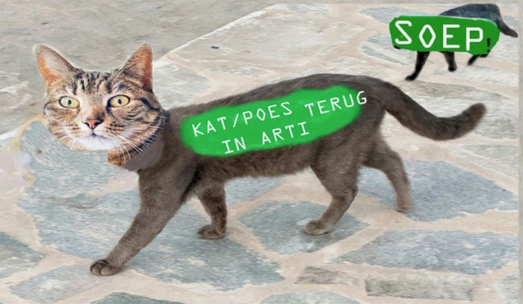 All participating artists: Marieke Geerlings, Anne Verhoijsen, Ebelina Elli Brethouwer, José Vonk, Céline Oldenhage, Bas Kosters, Jos Houweling, Maartje Jaquet, Inge Reisberman, Joop Stoop, Wasco, Femke van Heerikhuizen, Arnold Weel, Erik Alkema, Pauline Hille, Katelijne Davids, Anneke Harmsen, Emily Kocken, Monique Spaans, Gabriel Kousbroek, Ismihan Arsla, Saskia Budding, Moritz Ebinger, Rob Jongbloed. More information about the artists and their cat-like art can be found here (language is Dutch) here.